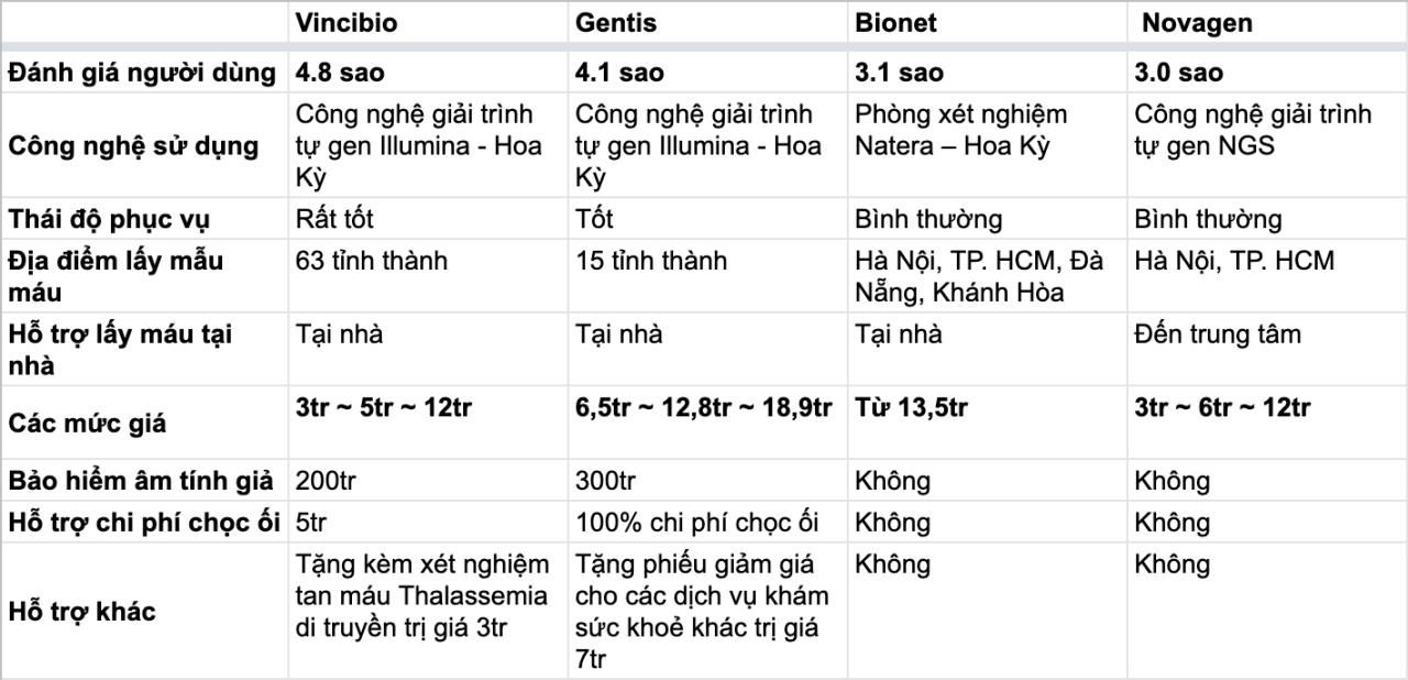 Cân nhắc: Vincibio có hệ thống đội ngũ chuyên gia vững về kiến thức di truyền học, hơn nữa tác phong làm việc cực kỳ nhiệt tình, chuyên nghiệp. Mức giá ở đây cũng rất hợp lý, là một địa điểm tin tưởng được nhiều bác sĩ đề xuất.