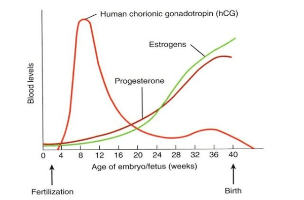 Khi thụ thai, hormone progesterone bắt đầu tăng nhanh và sẽ tiếp tục tăng trong suốt tam cá nguyệt đầu tiên của thai kỳ. Progesterone là nội tiết tố nuôi dưỡng thai kỳ, ngăn chặn các cơn co thắt tử cung và ức chế các phản ứng miễn dịch sớm.